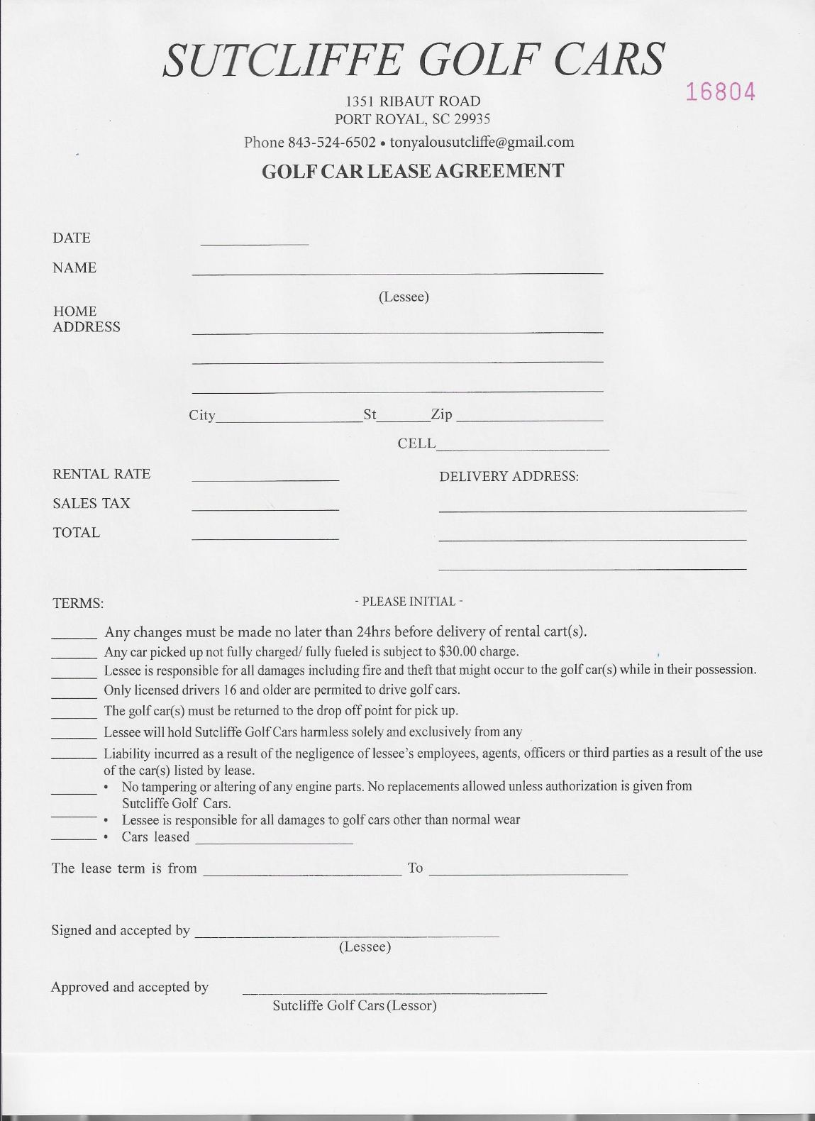 Click here to fill out our Golf Car Release Agreement.